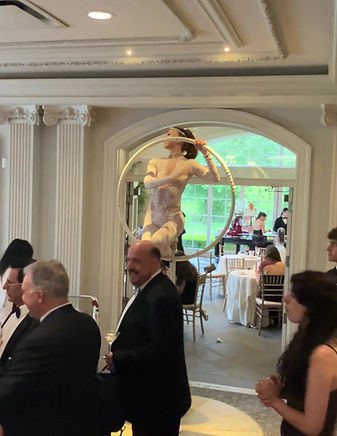 A glamorous aerialist pouring champagne from above is a fun and memorable way to get your party started! We're happy to serve champagne from the lollipop rig, chandelier, or martini glass, as well as any suspended aerial apparatus.